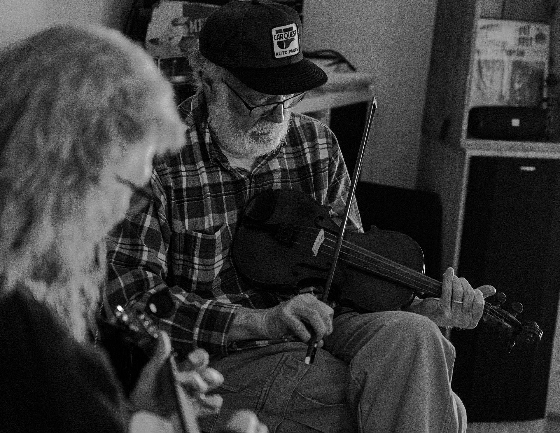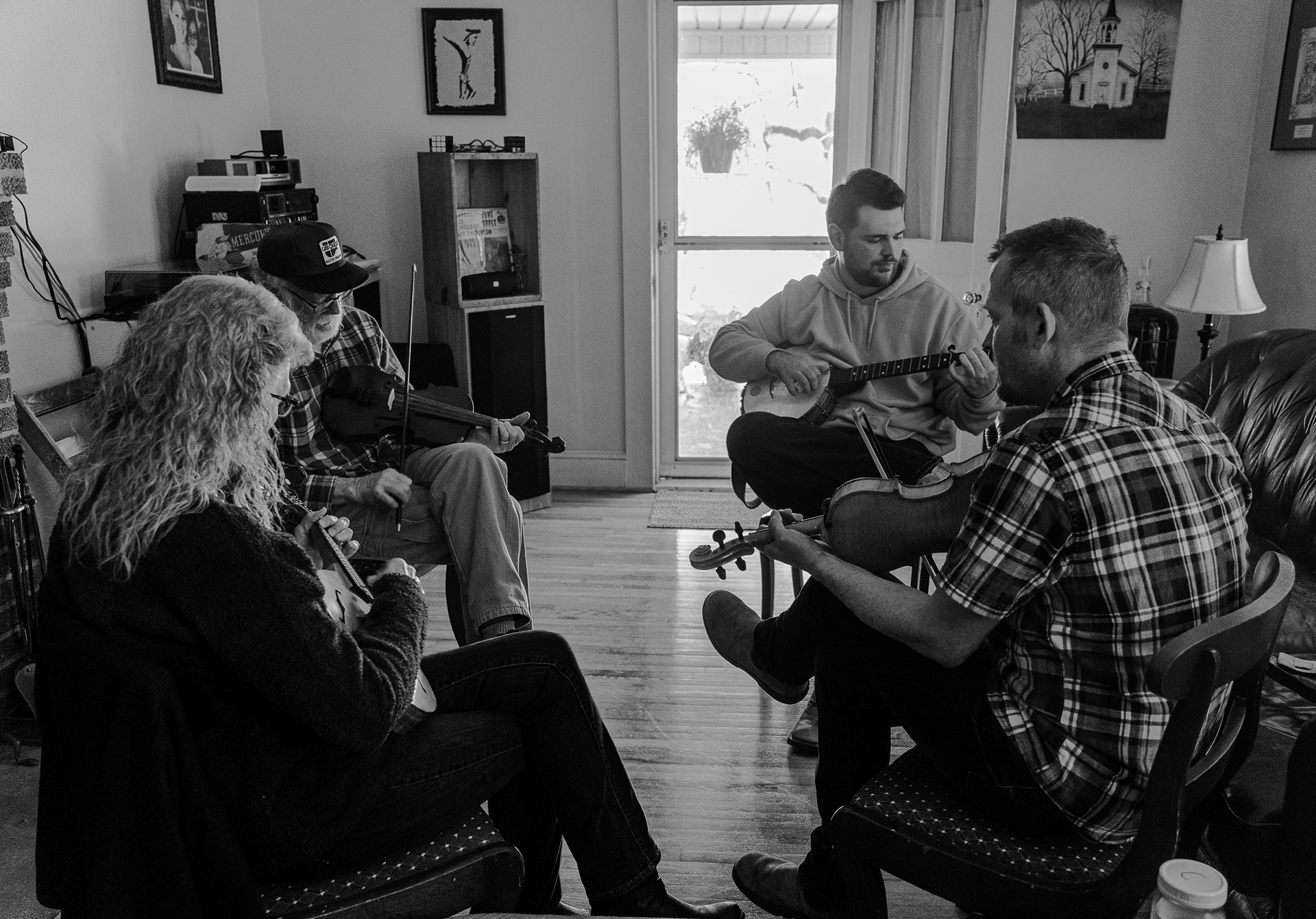 Old-time music at Chad Ritchie’s house with Richard and Barbara Bowman and Robbie Herman.